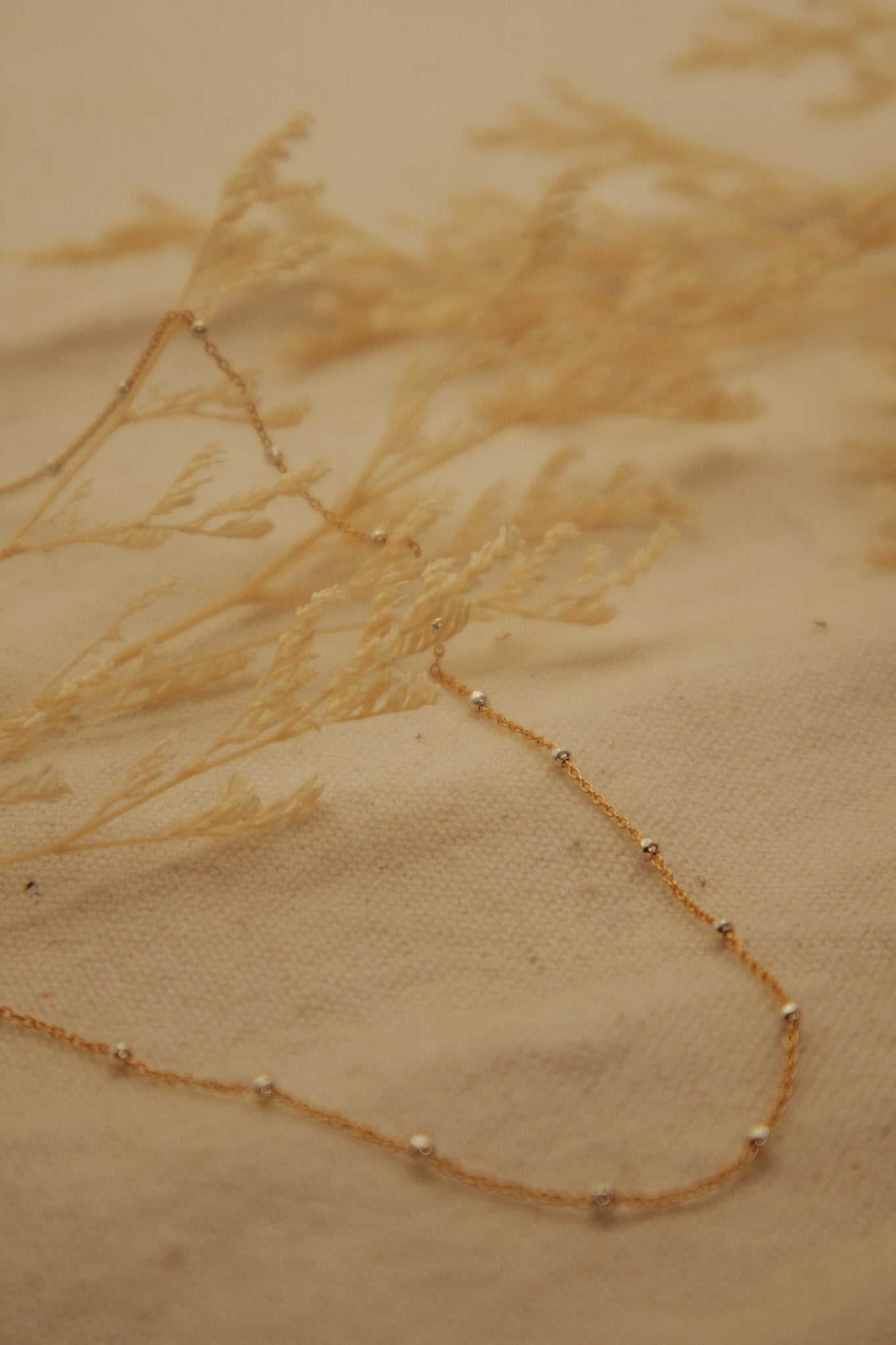 The perfect blend of two timeless metals. This 14k gold-fill chain is accented with delicate sterling silver beads, making it ideal for those who love mixing metals. It’s a simple yet stunning piece that can be worn every day — whether styled as a necklace or bracelet.