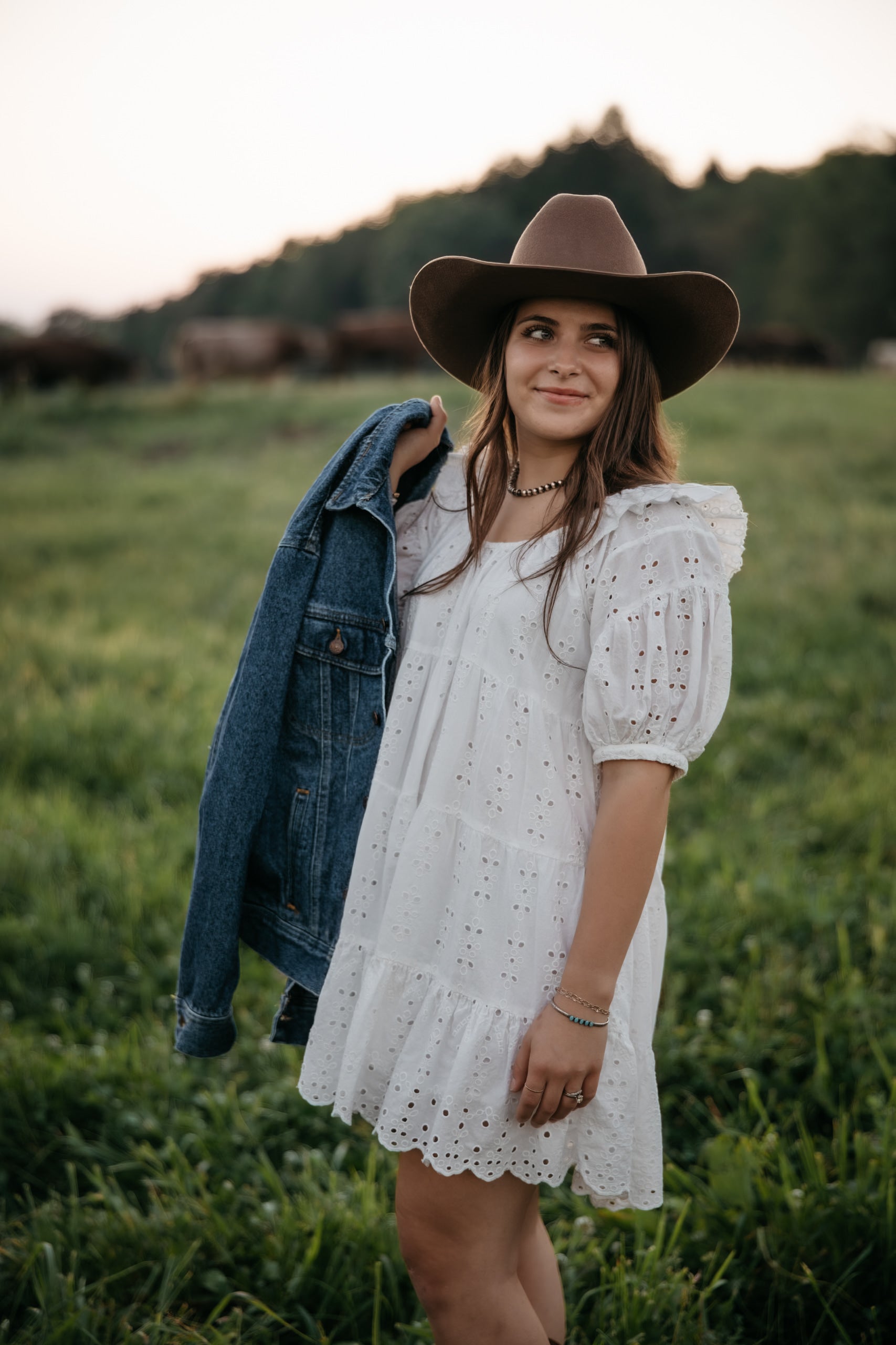 Featuring tiered layers, ruffled sleeves, and delicate eyelet detailing throughout, this dress embodies a romantic, vintage-inspired vibe. Its easy, flowy fit makes it as comfortable as it is beautiful.