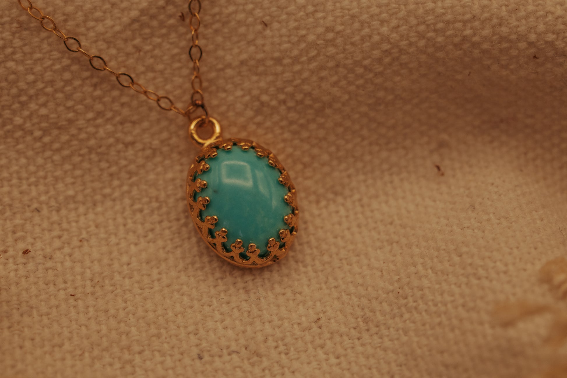 Simple, elegant, and full of natural beauty — The Haven Necklace features a genuine Kingman turquoise stone cradled in a delicate 14k gold-fill bezel setting. Each turquoise stone is unique, showcasing its own natural matrix and vibrant blue hue.
