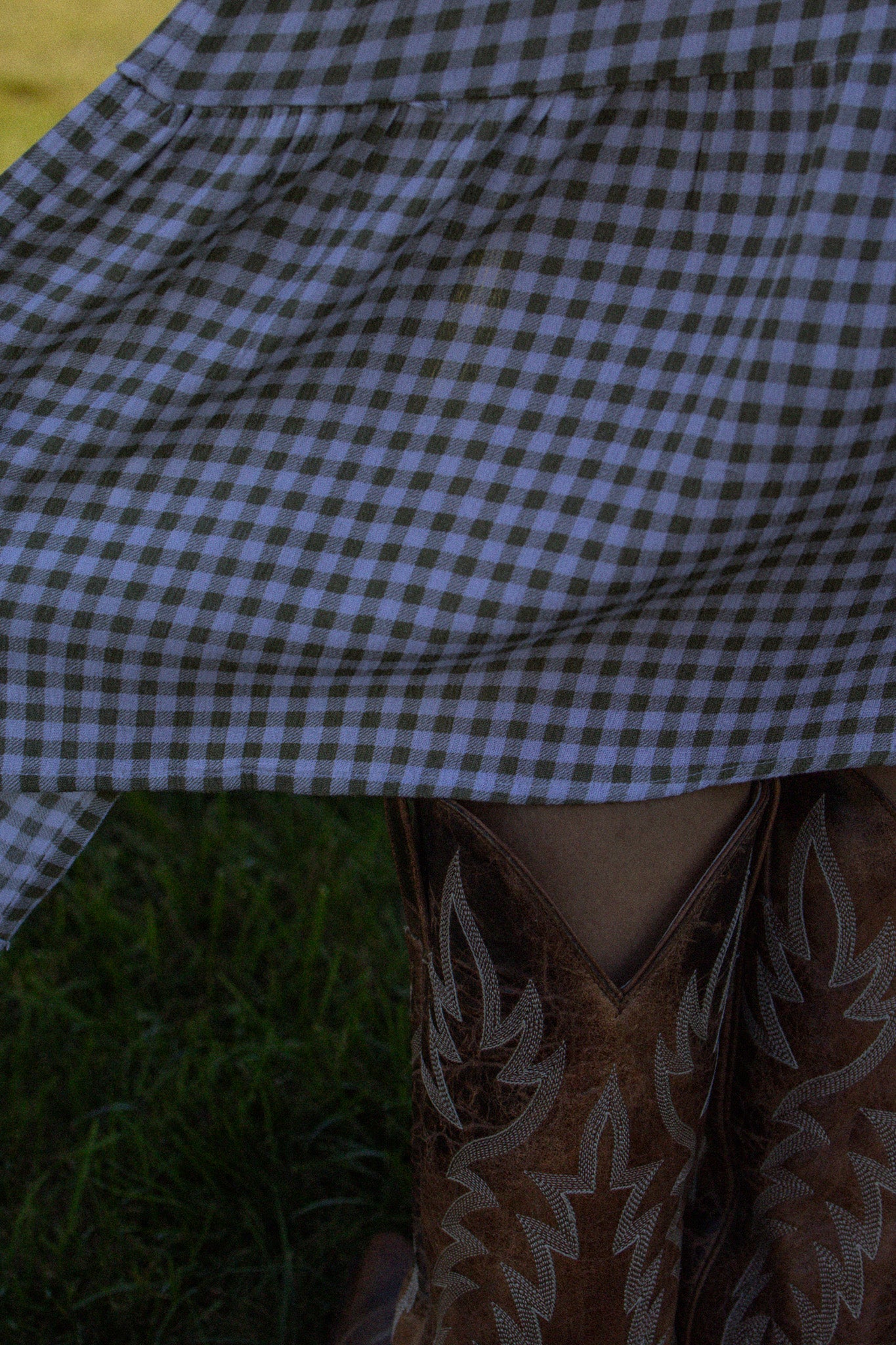 Chic and feminine, The Lillian Dress is a green and white gingham midi from Abercrombie & Fitch. Designed with a sweetheart neckline, puff sleeves, a side slit, and a smocked back for a flattering fit, this dress blends modern detail with timeless prairie charm.