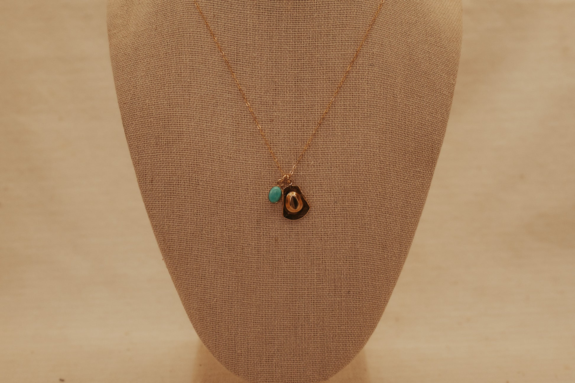 A little bit of western charm meets everyday elegance. ✦ This dainty 14k gold-fill necklace features a finely detailed cowboy boot charm paired with a genuine Kingman turquoise stone for a pop of vibrant color.