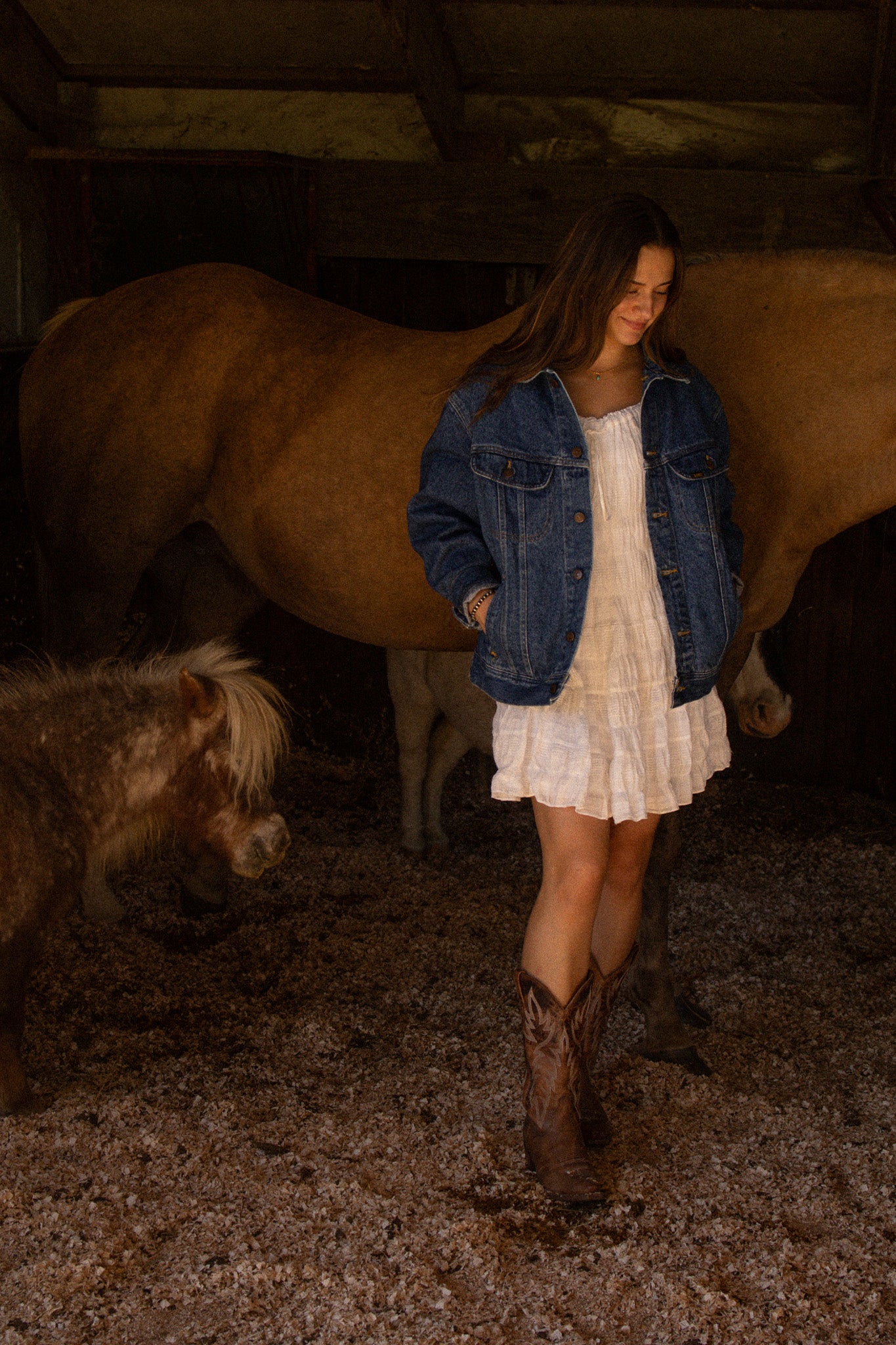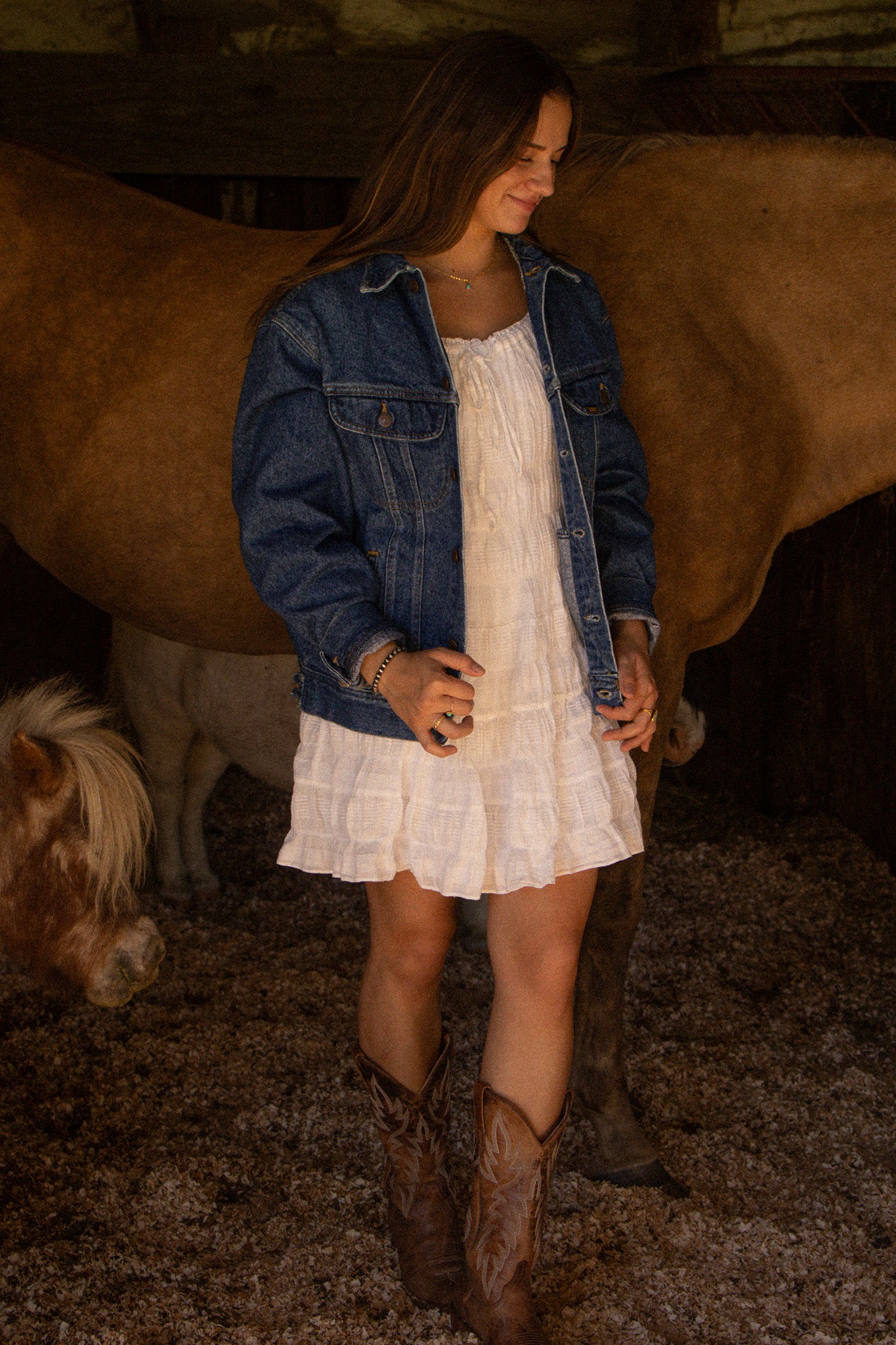 A true western classic, The Dakota Jacket is a vintage Y2K 2000s Lee denim piece in timeless medium-wash blue. Designed with a relaxed fit, button-front closure, and sturdy cotton denim, this jacket carries all the retro charm of the early 2000s while remaining endlessly versatile today. Perfect for layering over dresses, tees, or cozy knits year-round. Great for an oversized jacket!