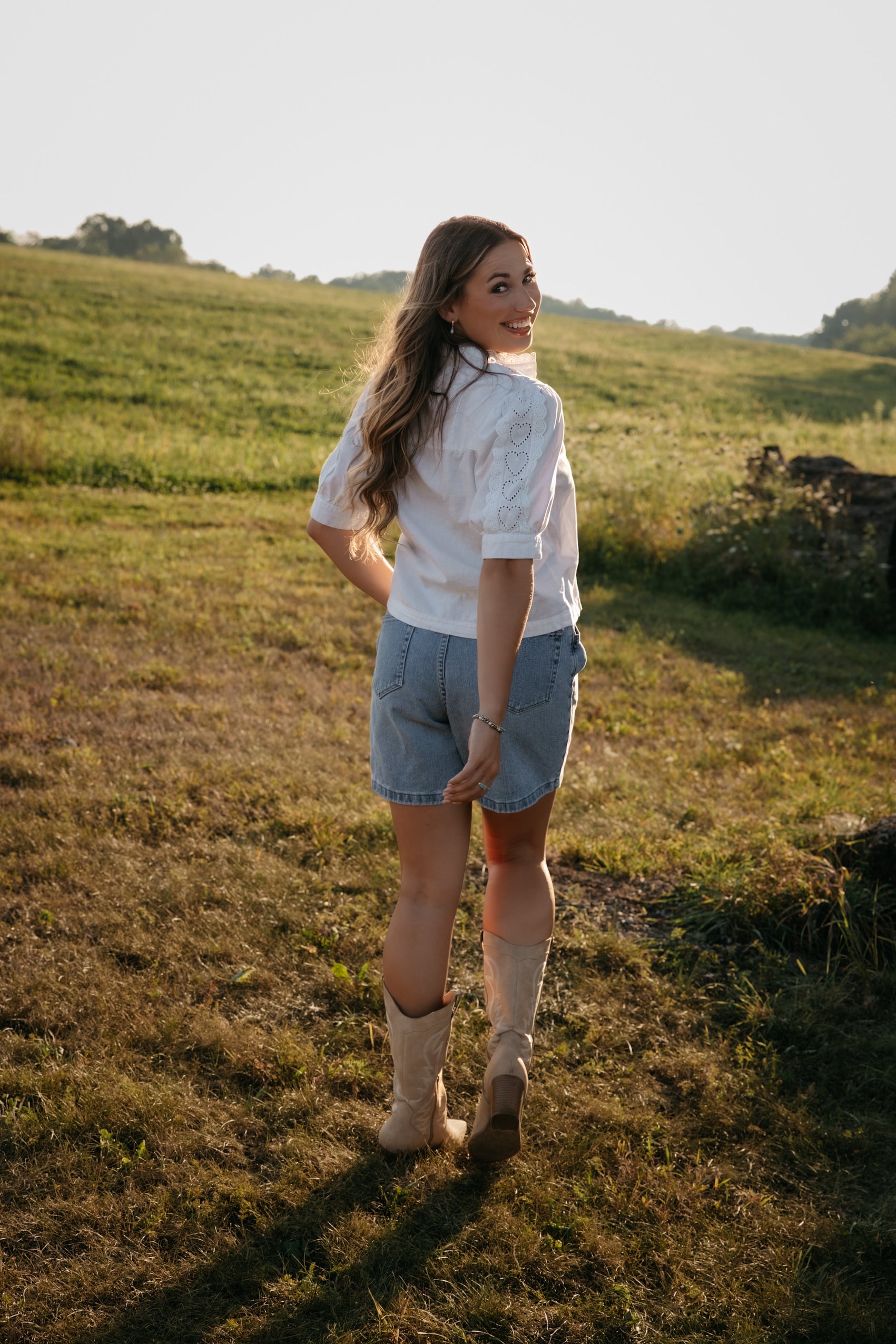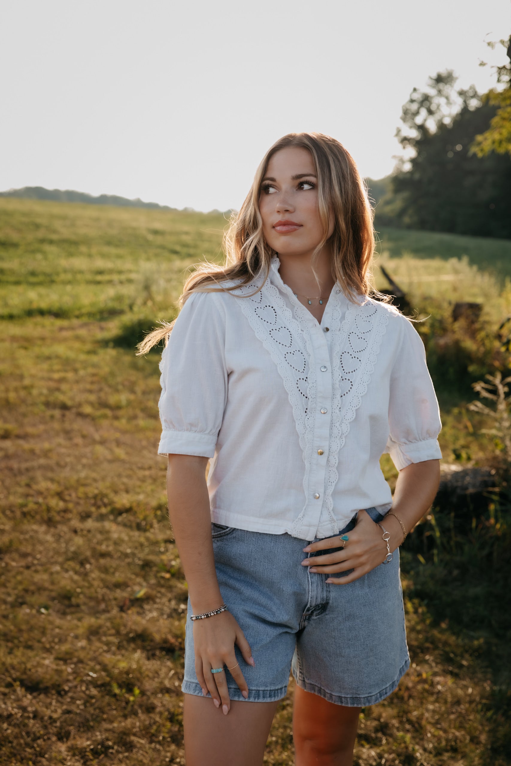Romantic and timeless, The Clover Blouse features delicate scalloped lace trim with sweet embroidered heart details, giving it a charming vintage feel.
