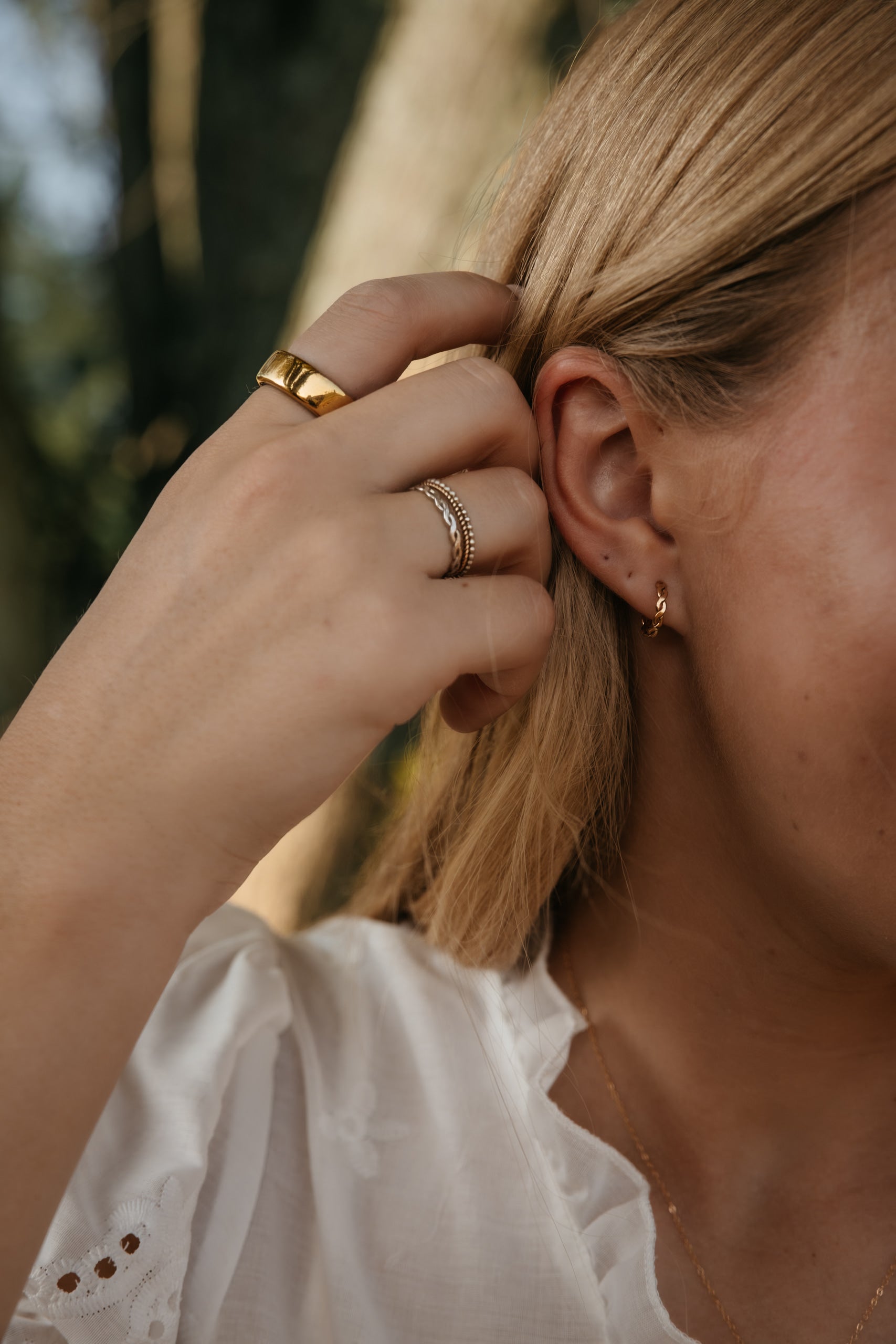 Simple hoops with a unique woven twist. These 14k gold-fill hoops are lightweight, versatile, and perfect for everyday wear. Their subtle texture adds just the right amount of character to any look, whether worn solo or paired with other favorites.
